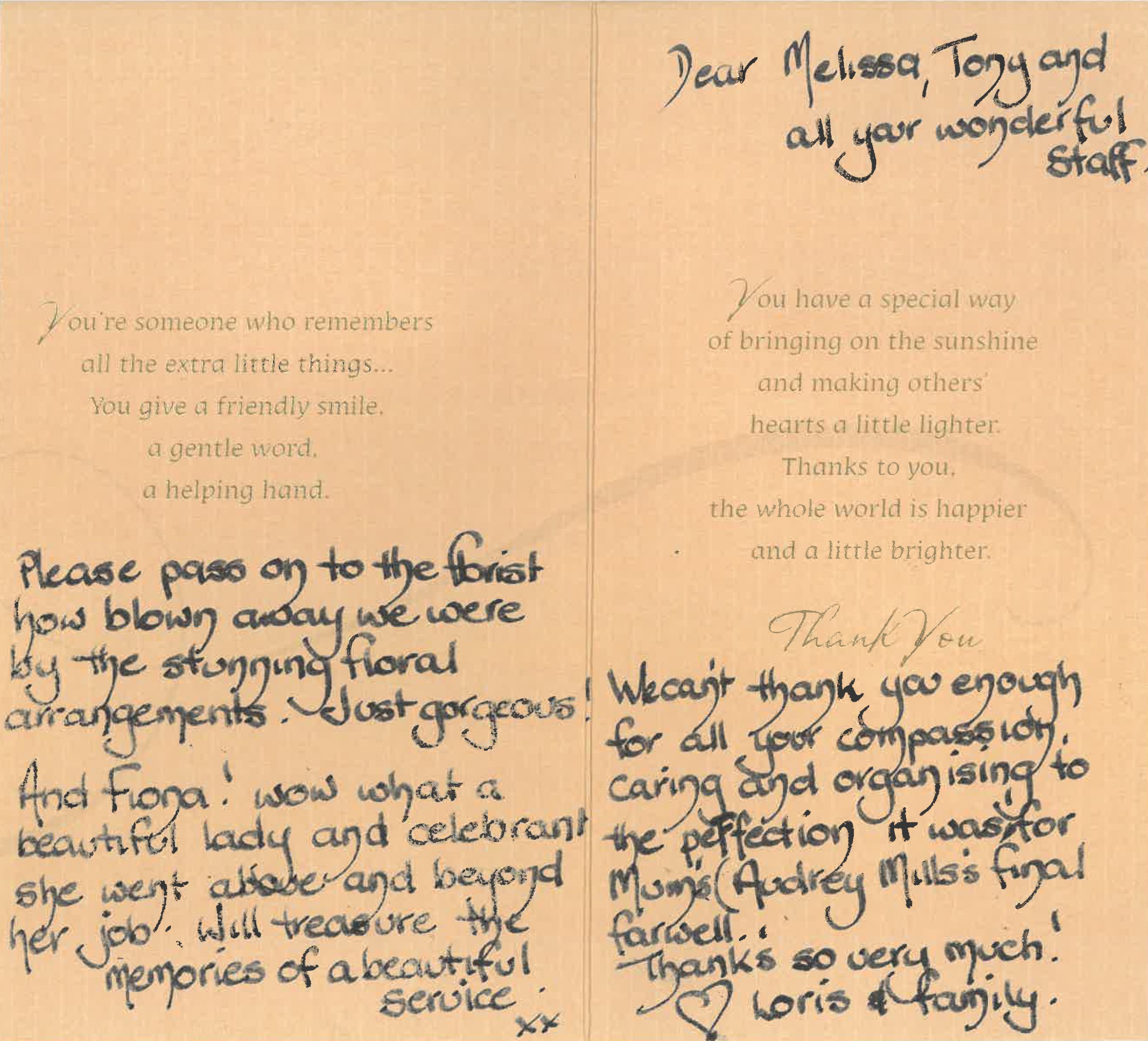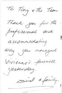 your staff for the smooth running of Lyn’s funeral.